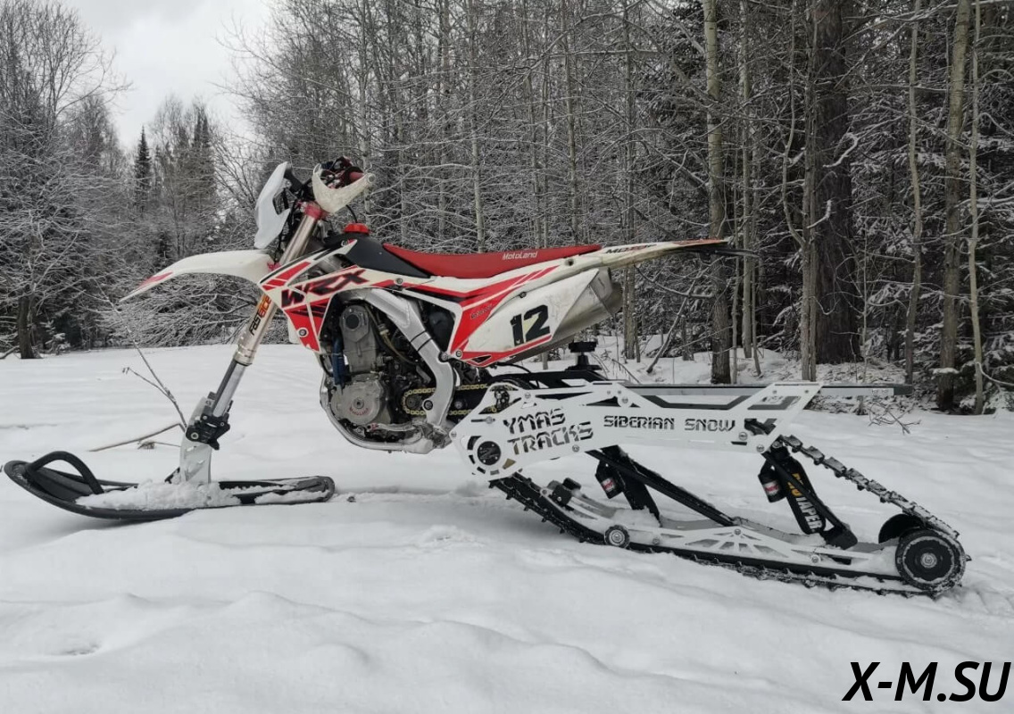 SiberianSnow от YmasTracks — универсальный гусеничный комплект для внедорожных мотоциклов. Гусеничный мотоцикл (СНОУБАЙК) это, по сути, одноколейный снегоход. Вы получаете возможность продлить мото сезон и эксплуатировать мотоцикл не только летом но и зимой.